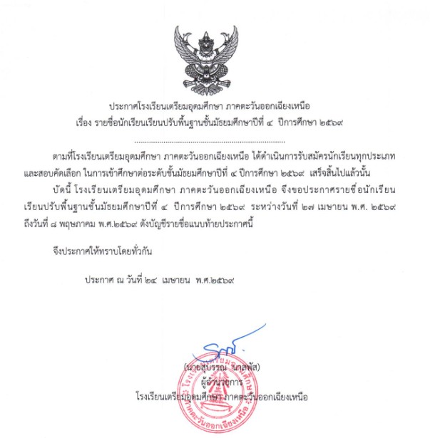 รายชื่อนักเรียนปรับพื้นฐาน ชั้นมัธยมศึกษาปีที่ 4 ปีการศึกษา 2569