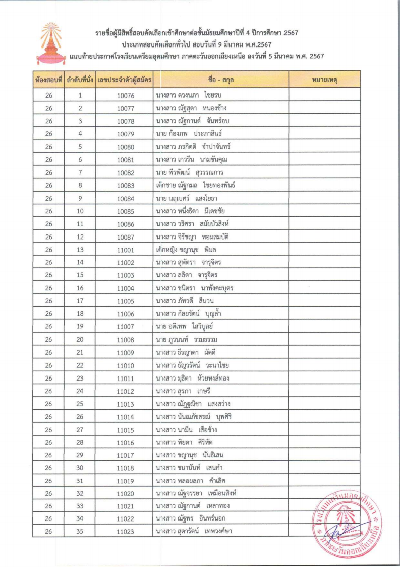 ประกาศรายชื่อผู้มีสิทธิ์สอบคัดเลือกเข้าศึกษาต่อ ชั้น ม.4 ปีการศึกษา 2567 ประเภทสอบคัดเลือกทั่วไป